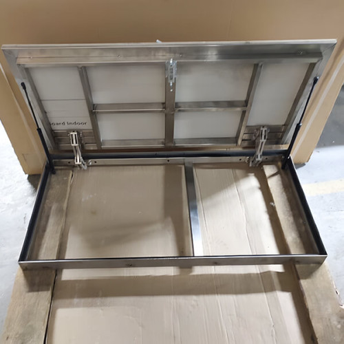 Готові люки заводської збірки матеріалу Неіржавна сталь встановлюються без облицювання плиткою на каналізаційні колодязі, шахти септиків та в приміщеннях. Вони ідеально вписуються в пастку льоху та можуть бути встановлені в готовий отвір на бетонній підлозі як без плитки, так і з плиткою. Крім того, вони оснащені амортизаторами для плавного відкривання і закривання.